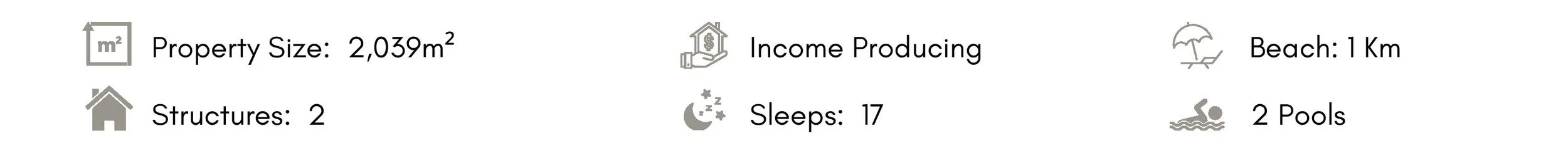 Completed in 2019, Casa Duna is a 1-bedroom plus loft villa that sleeps 5. The main bedroom is air conditioned, and the home includes its own private pool, outdoor shower, and a bright, modern layout perfect for couples, solo travelers, or small families. Approximately 80m² in size, it’s a compact yet profitable unit that adds flexibility and value to the overall rental setup.