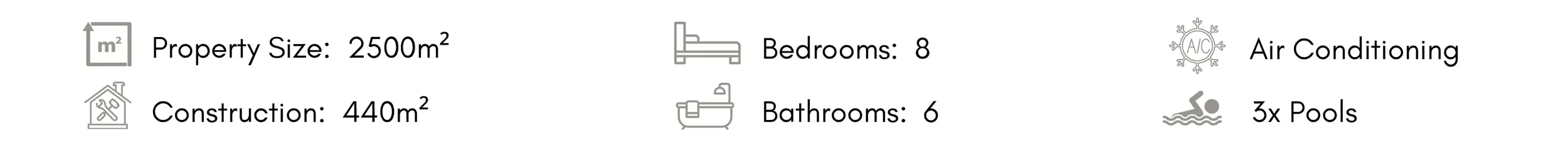 Six-bedroom main house with pool accommodating up to 12 guests